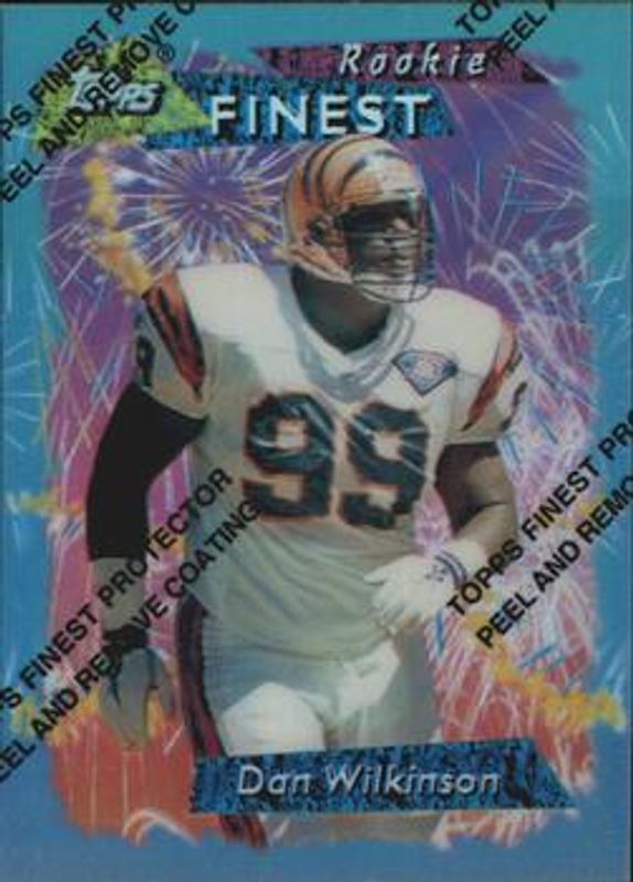 Dan Wilkinson's Football cards are available in at least 25 sets. Dan Wilkinson's biggest 7-day price movers are 1995 Topps Finest #55 Base, 1995 Topps Finest #FF17 Fan Favorites, and 1996 Topps Chrome #34 Refractor.