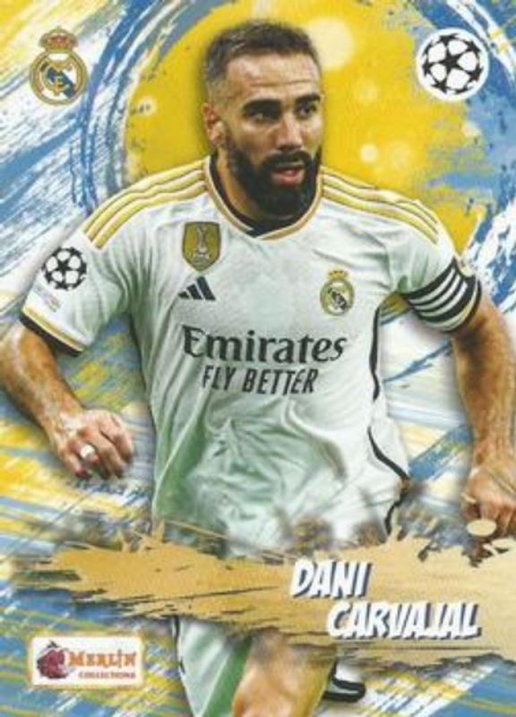 Dani Carvajal's Soccer cards are available in at least 13 sets. Dani Carvajal's biggest 7-day price movers are 2023 Topps Merlin Heritage UEFA Club Competitions #151 Base, 2023 Topps Merlin Heritage UEFA Club Competitions #151 Red /5, and 2023 Topps Merlin Heritage UEFA Club Competitions #151 Purple /99.