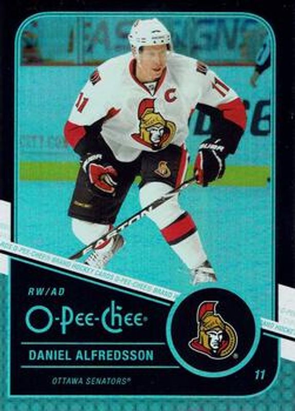 Daniel Alfredsson's Hockey cards are available in at least 264 sets. Daniel Alfredsson's biggest 7-day price movers are 2011 O-Pee-Chee #259 Black Rainbow /100, 2003 O-Pee-Chee #123 Gold /50, and 2003 O-Pee-Chee #123 Red /100.