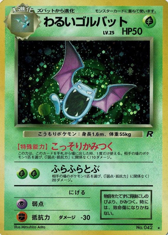 Dark Golbat's Pokemon cards are available in at least 4 sets. Dark Golbat's biggest 7-day price movers are 2000 Team Rocket #07/82 1st Edition Holo, 1997 Japanese Rocket Gang #42 Holo, and 2000 Team Rocket #07/82 Unlimited Holo.