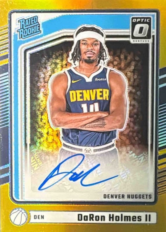 DaRon Holmes II's Basketball cards are available in at least 17 sets. DaRon Holmes II's biggest 7-day price movers are 2024 Optic #303 Rated Rookie Signatures - Holo, 2024 Optic #303 Rated Rookie Signatures - Fast Break, and 2024 Optic #303 Rated Rookie Signatures - Premium Box Set Blue /15.
