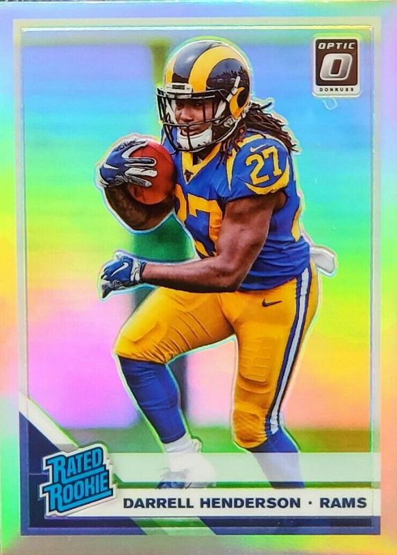 Darrell Henderson's Football cards are available in at least 23 sets. Darrell Henderson's biggest 7-day price movers are 2019 Optic #160 Holo, 2019 Optic #160 Pink, and 2019 Optic #160 Gold Vinyl /1.
