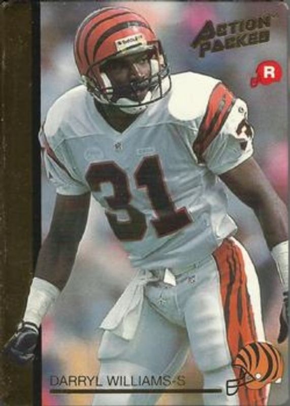 Darryl Williams' Football cards are available in at least 18 sets. Darryl Williams' biggest 7-day price movers are 1992 Action Packed Rookie/Update #24 Base, 1992 Action Packed Rookie/Update #24 Mint /250, and 1992 Action Packed Rookie/Update #25G 24K Gold.