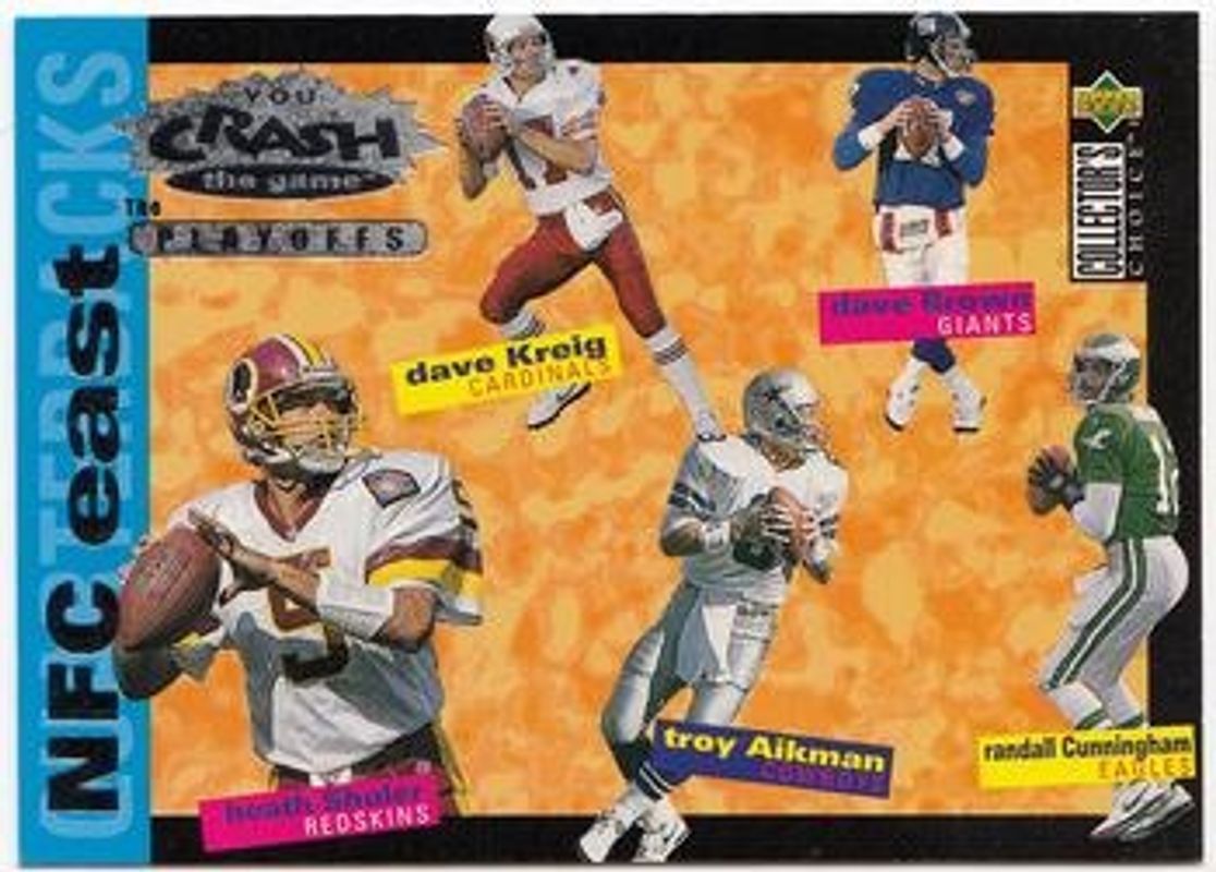 Dave Brown / Dave Krieg / Randall Cunningham / Troy AIkman's Football cards are available in at least 1 sets. Dave Brown / Dave Krieg / Randall Cunningham / Troy AIkman's biggest 7-day price movers are 1995 Upper Deck Collector's Choice Update #CP4 You Crash the Game: The Playoffs - Silver, and 1995 Upper Deck Collector's Choice Update #CP4 You Crash the Game: The Playoffs - Gold.