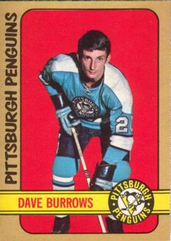 Dave Burrows' Hockey cards are available in at least 12 sets. Dave Burrows' biggest 7-day price movers are 1972 O-Pee-Chee #133 Base, 1972 Topps #82 Base, and 1973 Topps #27 Base.