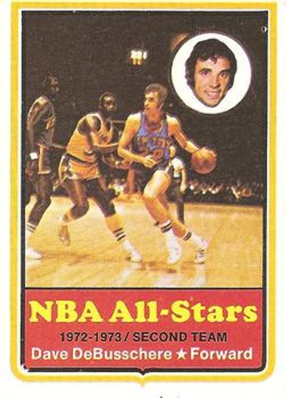 Dave DeBusschere's Basketball cards are available in at least 20 sets. Dave DeBusschere's biggest 7-day price movers are 1973 Topps #30 Base, 1993 Action Packed Hall of Fame #36G 24K Gold /2500, and 1993 Action Packed Hall of Fame #36 Base.