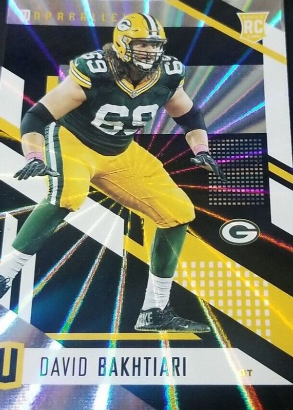 David Bakhtiari's Football cards are available in at least 1 sets. David Bakhtiari's biggest 7-day price movers are 2017 Unparalleled #126 Base.