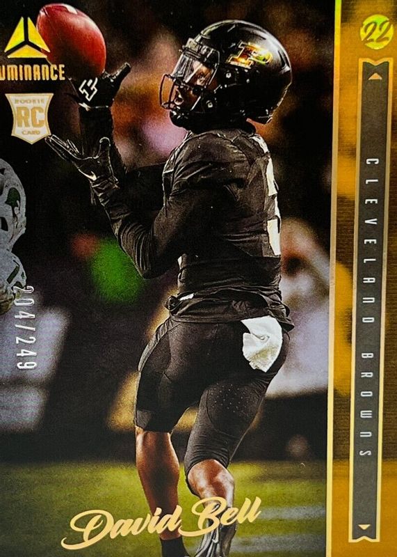 David Bell's Football cards are available in at least 10 sets. David Bell's biggest 7-day price movers are 2022 Luminance #119 Gold /249, 2022 Luminance #119 Platinum /1, and 2022 Contenders #DCA-DBE Draft Class Autographs (/99).