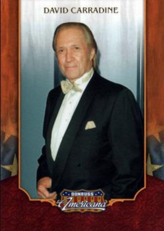 David Carradine's Pop Culture cards are available in at least 3 sets. David Carradine's biggest 7-day price movers are 2009 Donruss Americana #85 Base, 2009 Donruss Americana #21 Cinema Stars Material Super Stars /3, and 2011 Panini Americana #31 Base.