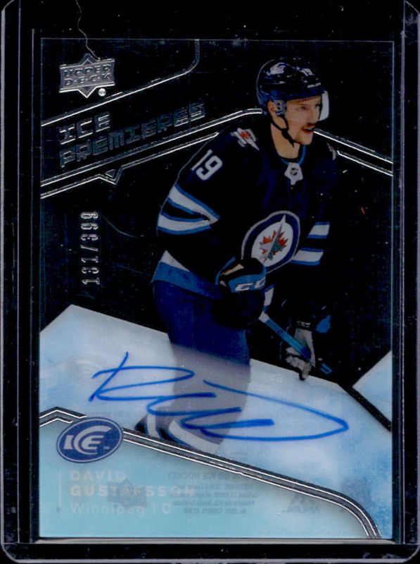 David Gustafsson's Hockey cards are available in at least 7 sets. David Gustafsson's biggest 7-day price movers are 2021 Upper Deck Ice #IPA-DG 2019 Upper Deck Ice Update /49, 2021 Upper Deck AHL #93 Base, and 2021 Upper Deck AHL #93 Printing Plates Cyan /1.