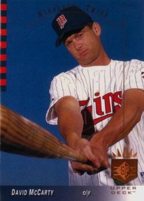 David McCarty's Baseball cards are available in at least 15 sets. David McCarty's biggest 7-day price movers are 1993 SP #250 Base, 1994 Pinnacle Select #154 Base, and 1994 Topps Finest #17 Base.