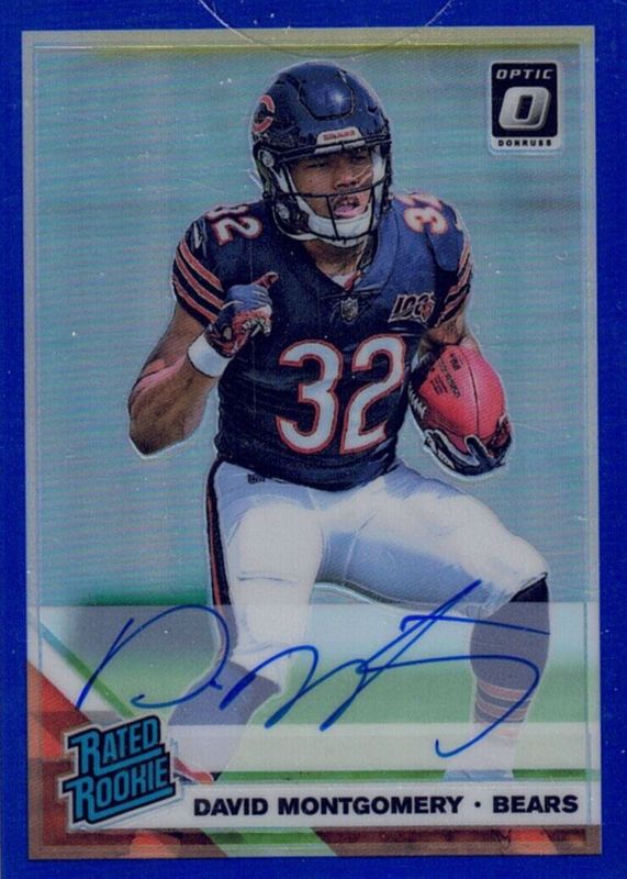 David Montgomery's Football cards are available in at least 40 sets. David Montgomery's biggest 7-day price movers are 2019 Optic #161 Rated Rookie Autographs - Blue (/75), 2024 Prizm #94 Pandora /400, and 2024 Prizm #94 Choice Blue /14.