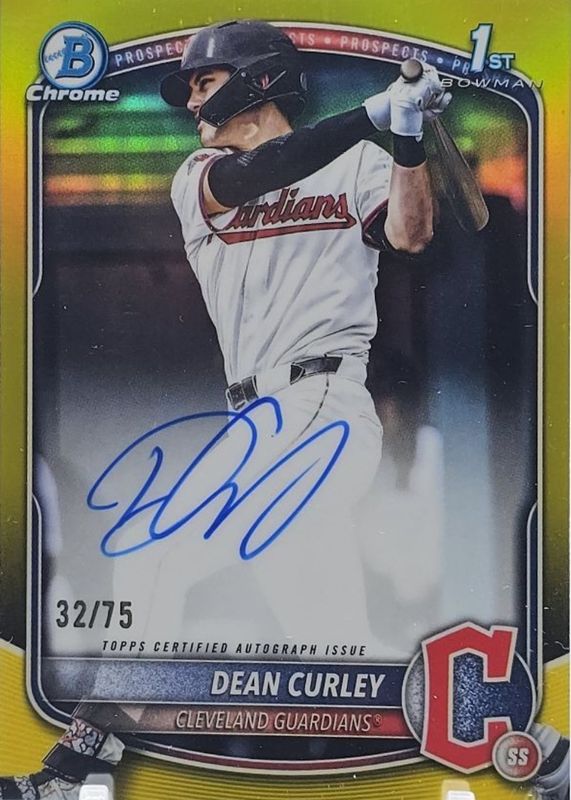 Dean Curley's Baseball cards are available in at least 4 sets. Dean Curley's biggest 7-day price movers are 2025 Bowman Draft #CPA-DC Chrome Prospect Auto (1st), 2025 Bowman Draft #CPA-DC Chrome Prospect Auto - Yellow Refractor /75 (1st), and 2025 Bowman Draft #CPA-DC Chrome Prospect Auto - Green Lava Refractor /99 (1st).