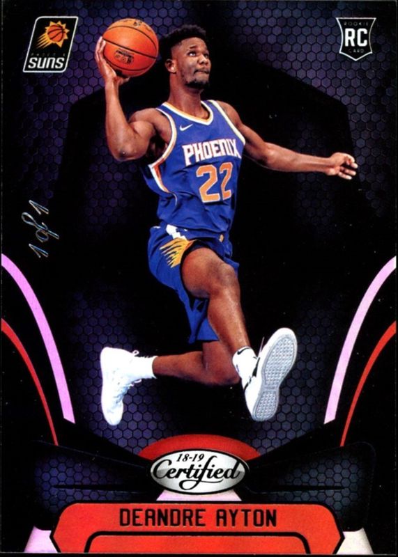Deandre Ayton's Basketball cards are available in at least 167 sets. Deandre Ayton's biggest 7-day price movers are 2018 Certified #151 Mirror Black /1, 2018 Contenders Optic #111 Rookie Ticket Auto - Red /149 (One Hand on Ball), and 2018 Cornerstones #10 Downtown /(SSP).