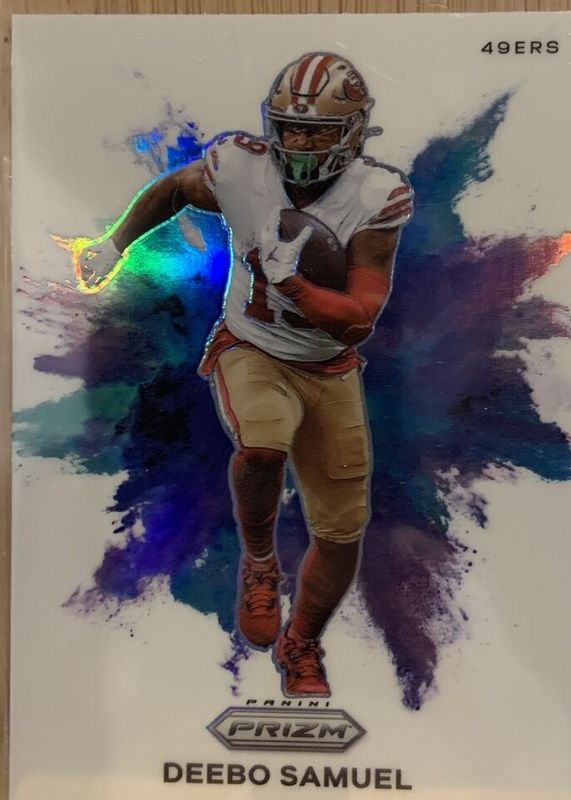 Deebo Samuel's Football cards are available in at least 87 sets. Deebo Samuel's biggest 7-day price movers are 2023 Prizm #CB-21 Color Blast /(SSP), 2022 Absolute #KH6 Kaboom! (Horizontal), and 2024 Spectra #CS-DSL Color Sphere /(SSP).