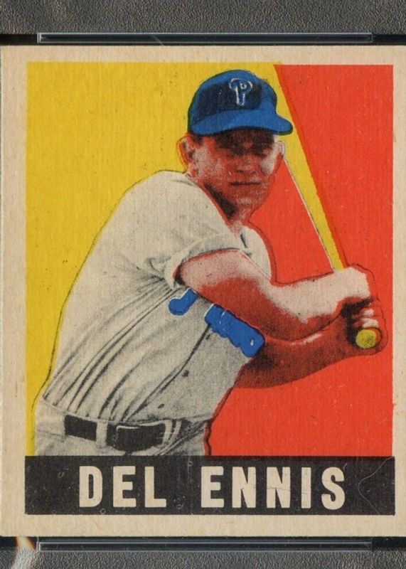 Del Ennis' Baseball cards are available in at least 13 sets. Del Ennis' biggest 7-day price movers are 1948 Leaf #49 Base, 1952 Topps #223 Base, and 1951 Blue Backs #4 Base.