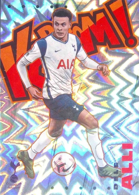 Dele Alli's Soccer cards are available in at least 19 sets. Dele Alli's biggest 7-day price movers are 2020 Prizm Premier League #17 Kaboom! /(SSP), 2020 Obsidian #MO-DA Mosaic Material Relics - Orange /50, and 2020 Obsidian #MO-DA Mosaic Material Relics - Yellow /10.