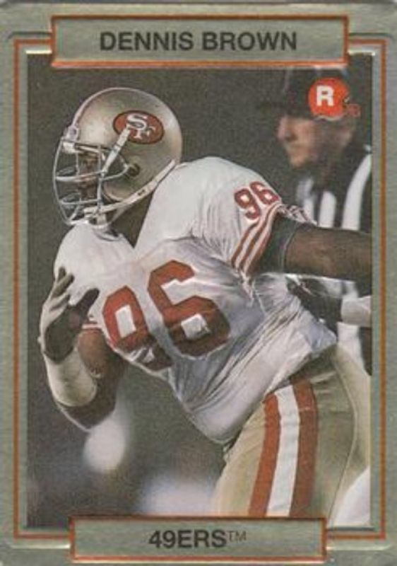 Dennis Brown's Football cards are available in at least 3 sets. Dennis Brown's biggest 7-day price movers are 1990 Action Packed Rookie Update #21 Base, 1993 Upper Deck San Francisco 49ers #SF6 Base, and 1993 Upper Deck #211 Base.