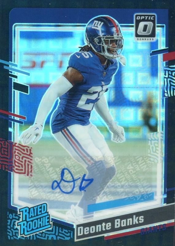 Deonte Banks' Football cards are available in at least 4 sets. Deonte Banks' biggest 7-day price movers are 2025 Certified #CPS-DBE Certified Potential Signatures - Blue Etch /20, 2025 Certified #CPS-DBE Certified Potential Signatures - Mirror Green /25, and 2025 Certified #CPS-DBA Certified Potential Signatures /125.