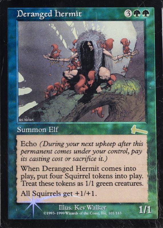 Deranged Hermit's Magic: The Gathering cards are available in at least 1 sets. Deranged Hermit's biggest 7-day price movers are 1999 Urza's Legacy #101 Foil, and 1999 Urza's Legacy #101 Base.