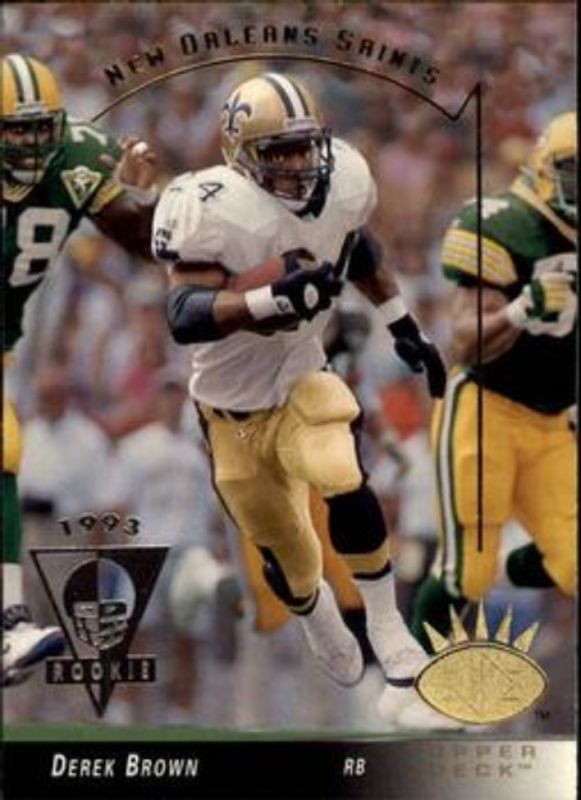 Derek Brown's Football cards are available in at least 19 sets. Derek Brown's biggest 7-day price movers are 1993 SP #173 Base, 1993 SP #181 Base, and 1994 Pinnacle Select #146 Base.