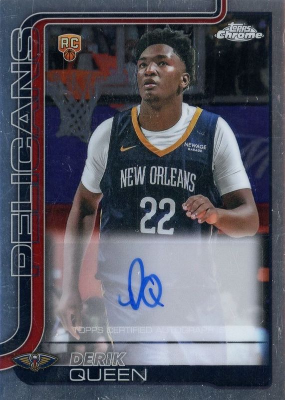 Derik Queen's Basketball cards are available in at least 8 sets. Derik Queen's biggest 7-day price movers are 2025 Topps #NL-13 No Limit, 2025 Topps #RTO-DQ Rise to the Occasion Relics, and 2025 Topps Chrome #263 Base.