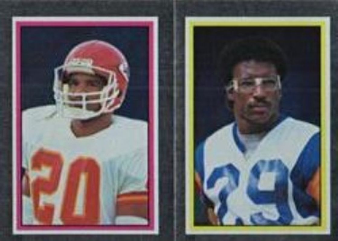 Deron Cherry's Football cards are available in at least 15 sets. Deron Cherry's biggest 7-day price movers are 1984 Topps Stickers #134-/-146 Base, 1984 Topps Stickers #209 Base, and 2025 Optic #2 2024 Playoff Contenders Optic Football - All-Time Contender - Gold Vinyl /1.