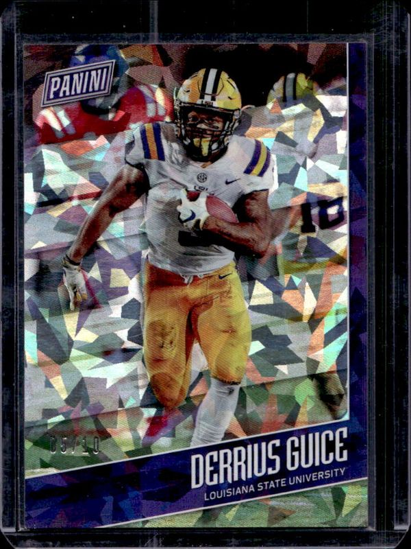 Derrius Guice's Multi-Sport cards are available in at least 3 sets. Derrius Guice's biggest 7-day price movers are 2018 Panini Father's Day #FB9 NFL Rookies Cracked Ice /10, 2018 Panini Father's Day #FB9 NFL Rookies /399, and 2018 Panini Father's Day #FB9 NFL Rookies Future Frames /50.
