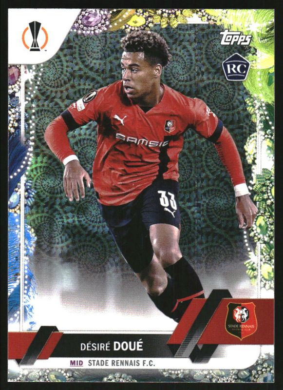 Desire Doue's Soccer cards are available in at least 12 sets. Desire Doue's biggest 7-day price movers are 2022 Topps UEFA Club Competitions Carnaval Edition #48 Green /75, 2022 Topps UEFA Club Competitions Carnaval Edition #48 Orange /25, and 2022 Topps UEFA Club Competitions Carnaval Edition #48 Base.