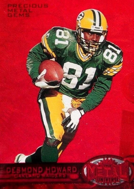 Desmond Howard's Football cards are available in at least 29 sets. Desmond Howard's biggest 7-day price movers are 1997 Metal Universe #132 Precious Metal Gems Red /135, 1997 Metal Universe #132 Precious Metal Gems Green /15, and 2019 Majestic #MAG-DH Magnificent Signatures - Gold /5.