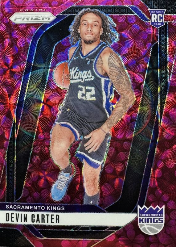 Devin Carter's Basketball cards are available in at least 34 sets. Devin Carter's biggest 7-day price movers are 2024 Prizm #231 Plum Blossom /8, 2024 Totally Certified #RYA-DEV Rookie Yearbook Autographs - Nebula Platinum Mirror /1, and 2024 Silhouette #SIL-DEV Silhouette Autographs - Holo Platinum /1.