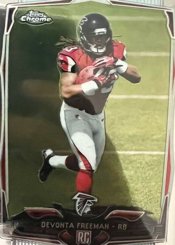 Devonta Freeman's Football cards are available in at least 95 sets. Devonta Freeman's biggest 7-day price movers are 2014 Topps Chrome #216 Base, 2014 Topps Chrome #216 Refractor, and 2014 Topps Translucent Base.