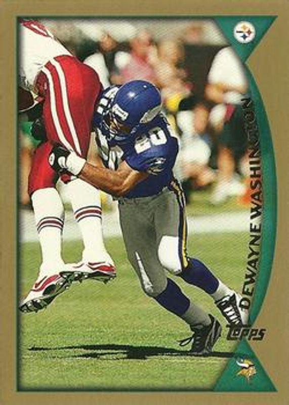DeWayne Washington's Football cards are available in at least 19 sets. DeWayne Washington's biggest 7-day price movers are 1998 Topps #242 Base, 1997 Topps Stadium Club #309 First Day Issue, and 1997 Topps Stadium Club #309 Printing Plates Yellow.
