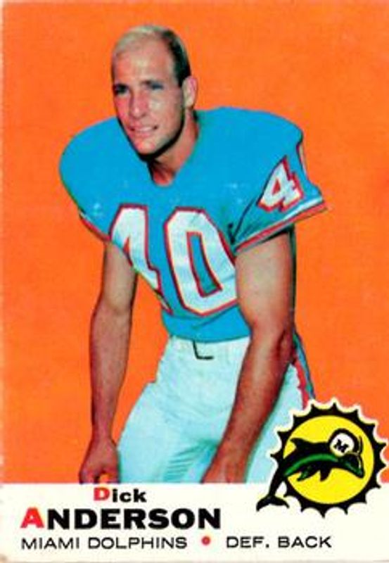 Dick Anderson's Football cards are available in at least 8 sets. Dick Anderson's biggest 7-day price movers are 1969 Topps #59 Base, 1971 Topps #67 Base, and 1972 Topps #98 Base.