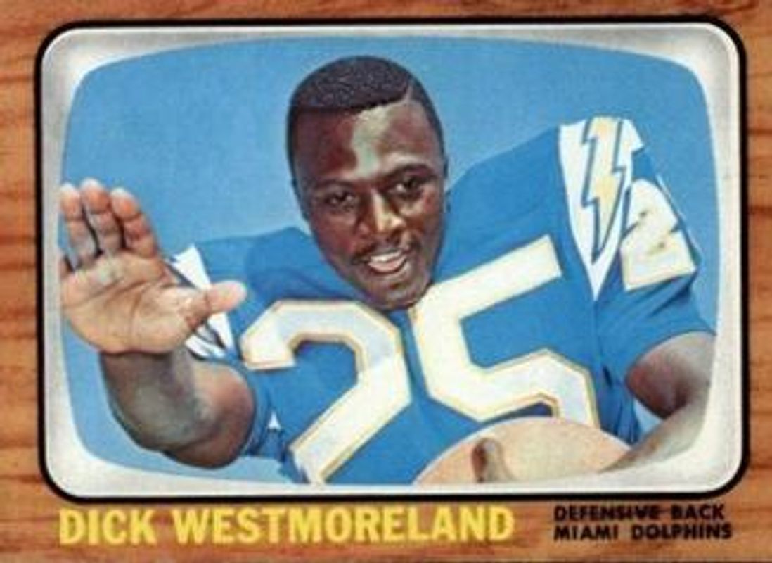 Dick Westmoreland's Football cards are available in at least 4 sets. Dick Westmoreland's biggest 7-day price movers are 1966 Topps #87 Base, 1965 Topps #174 Base, and 1968 Topps #118 Base.