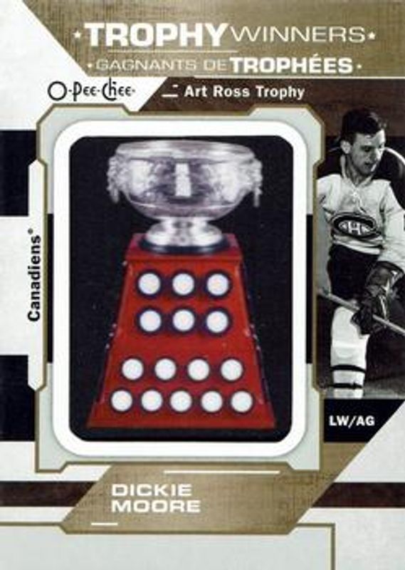 Dickie Moore's Hockey cards are available in at least 6 sets. Dickie Moore's biggest 7-day price movers are 2018 O-Pee-Chee #P-40 Manufactured Trophy Winners Patches, 2001 Parkhurst #077 Parkie Reprints, and 2001 Parkhurst #019 Parkie Reprints.