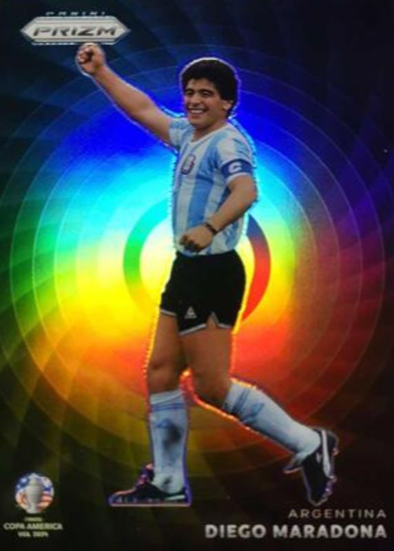 Diego Maradona's Soccer cards are available in at least 57 sets. Diego Maradona's biggest 7-day price movers are 2024 Prizm Copa America #12 Color Wheel /(SSP), 2023 Donruss #24 Kaboom! /(SSP), and 2024 Topps Reverence UEFA Club Competitions #18 Black /10.