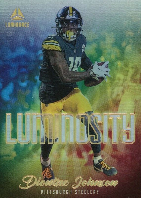Diontae Johnson's Football cards are available in at least 33 sets. Diontae Johnson's biggest 7-day price movers are 2022 Luminance #LM-DJO Luminosity /(SSP), 2019 Optic #177 Pink, and 2019 Select #31 Concourse Pink /10.
