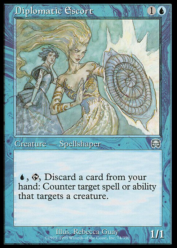 Diplomatic Escort's Magic: The Gathering cards are available in at least 1 sets. Diplomatic Escort's biggest 7-day price movers are 1999 Mercadian Masques #74 Base, and 1999 Mercadian Masques #74 Foil.