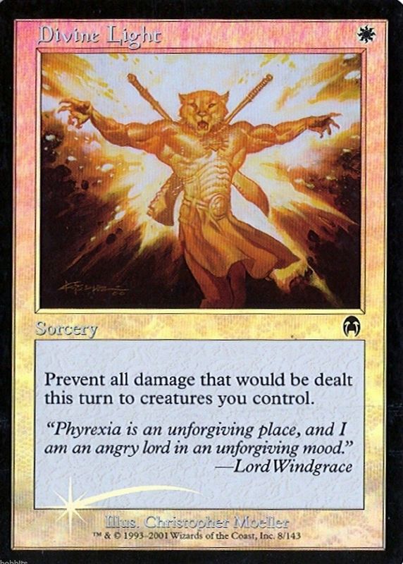Divine Light's Magic: The Gathering cards are available in at least 1 sets. Divine Light's biggest 7-day price movers are 2001 Apocalypse #8 Foil, and 2001 Apocalypse #8 Base.