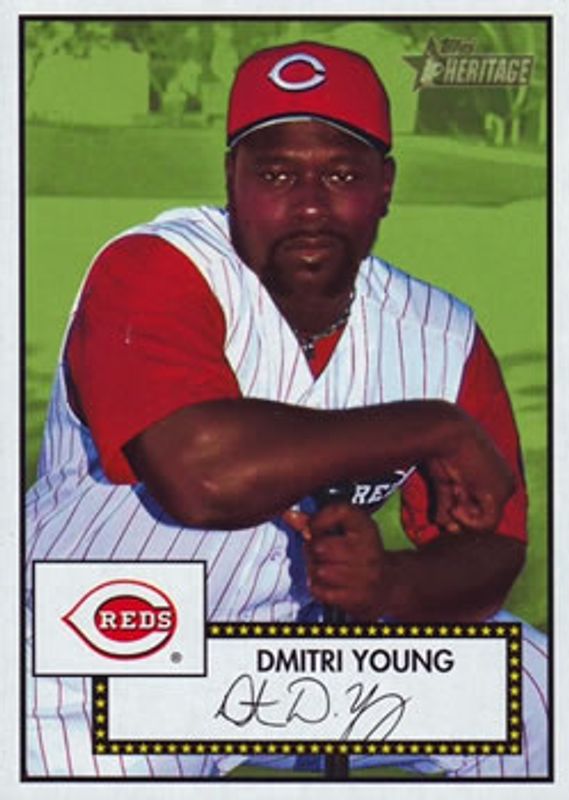 Dmitri Young's Baseball cards are available in at least 39 sets. Dmitri Young's biggest 7-day price movers are 2001 Topps Heritage #96 Base, 2002 Topps Heritage #THC43 Chrome /553, and 2002 Topps Heritage #141 Base.