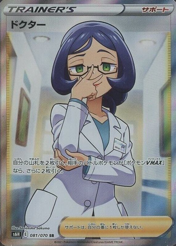 Doctor's Pokemon cards are available in at least 2 sets. Doctor's biggest 7-day price movers are 2021 Sword & Shield: Chilling Reign #190/198 Holo (Full Art), 2021 Sword & Shield: Chilling Reign #214/198 Holo (Secret), and 2021 Japanese Sword & Shield: Silver Lance #089/070 Hyper Rare.