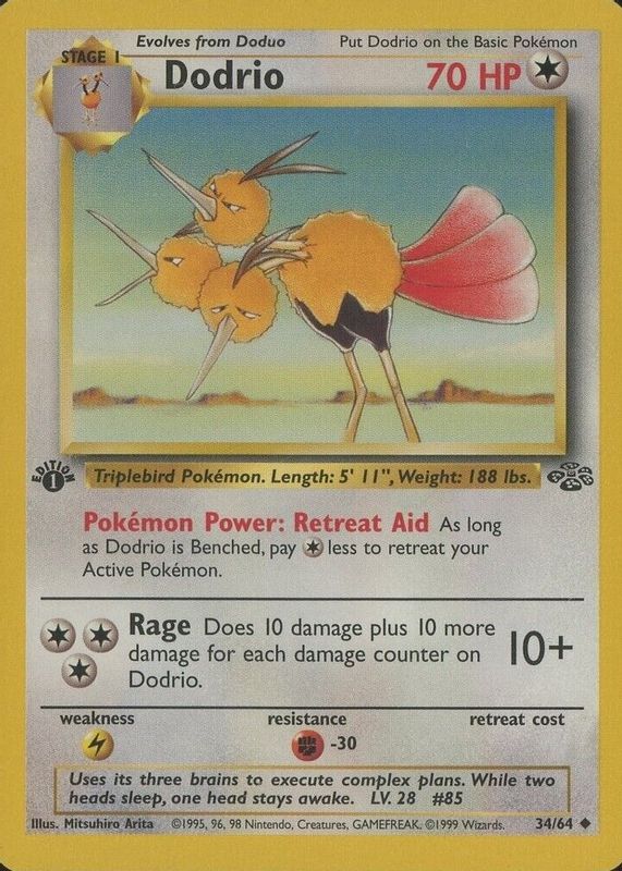 Dodrio's Pokemon cards are available in at least 26 sets. Dodrio's biggest 7-day price movers are 2023 Japanese Scarlet & Violet: Shiny Treasure ex #308/190 Shiny Rare, 1999 Jungle #34/64 1st Edition, and 2002 Legendary Collection #41 Reverse Holo.