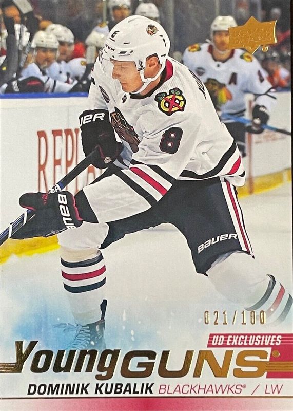 Dominik Kubalik's Hockey cards are available in at least 43 sets. Dominik Kubalik's biggest 7-day price movers are 2019 Upper Deck #246 Young Guns - UD Exclusives /100, 2022 Topps Chrome NHL Sticker Collection #111 Orange Refractor /25, and 2019 Upper Deck #246 Young Guns - Clear Cut Exclusives.