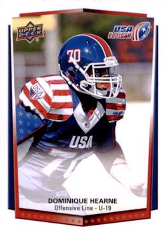 Dominique Hearne's Football cards are available in at least 1 sets. Dominique Hearne's biggest 7-day price movers are 2015 Upper Deck USA #20 Base, and 2015 Upper Deck USA #20 Autograph.