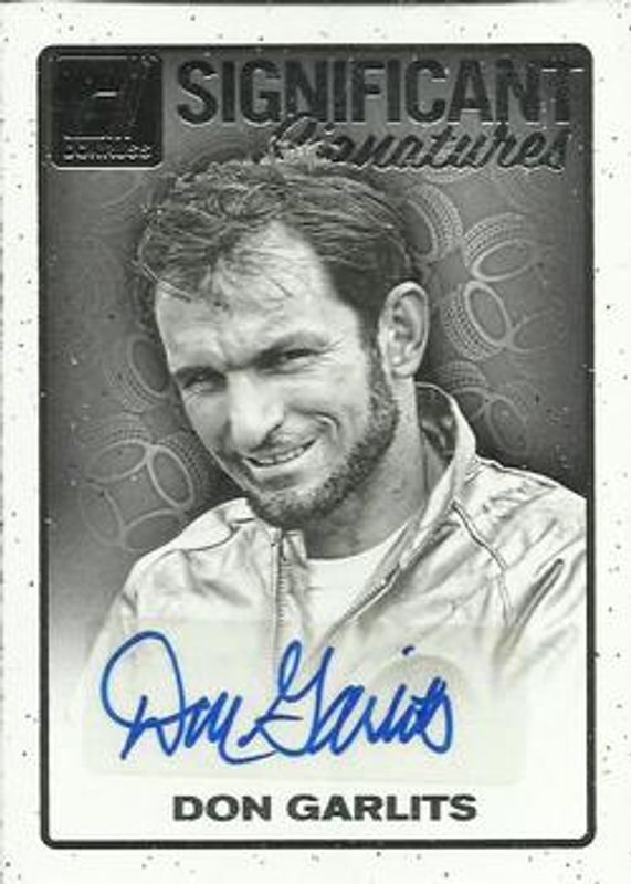 Don Garlits' Racing cards are available in at least 4 sets. Don Garlits' biggest 7-day price movers are 2017 Donruss NASCAR #S-DG Significant Signatures, 2017 Donruss NASCAR #S-DG Significant Signatures Holo Black /1, and 2017 Donruss NASCAR #S-DG Significant Signatures Holo Gold /25.
