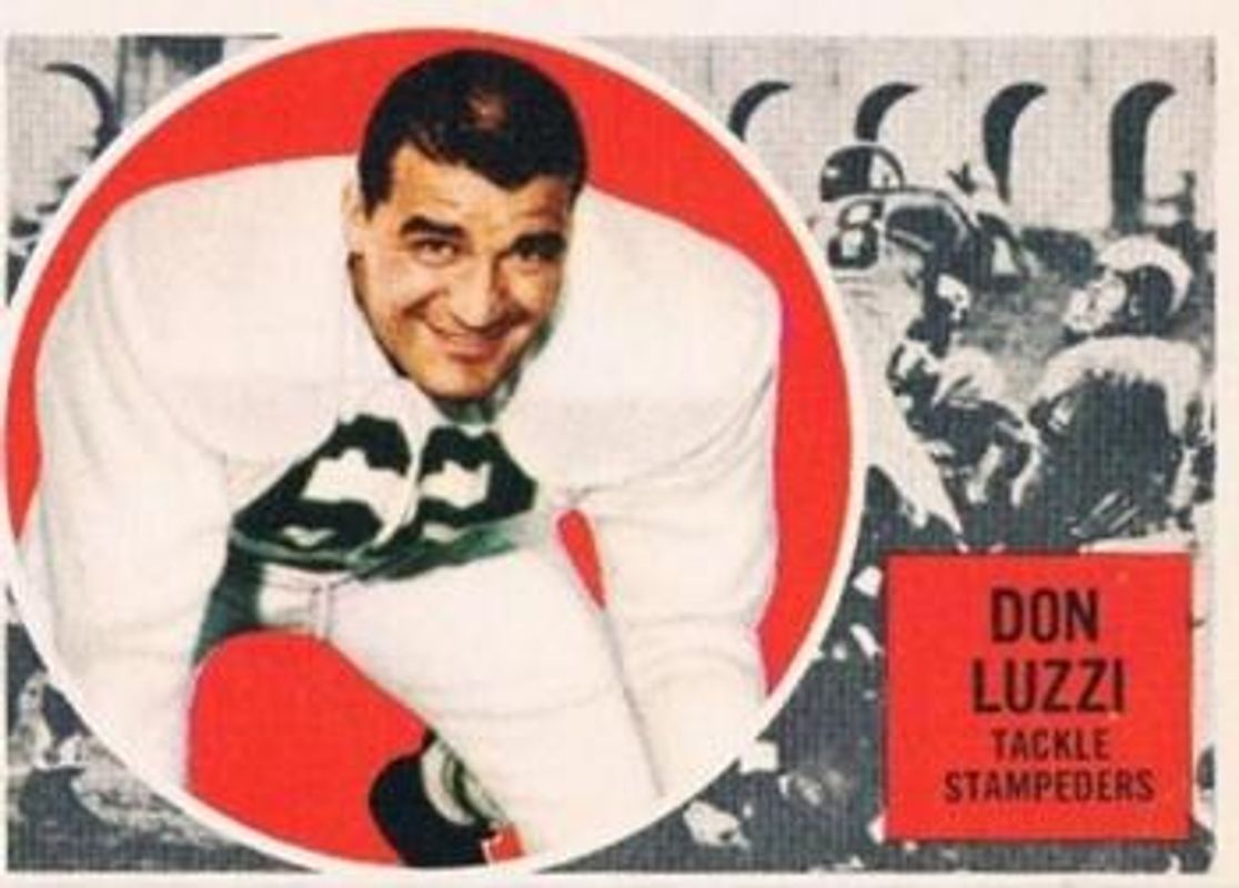 Don Luzzi's Football cards are available in at least 6 sets. Don Luzzi's biggest 7-day price movers are 1960 Topps CFL #27 Base, 1961 Topps CFL #22 Base, and 1962 Topps CFL #29 Base.