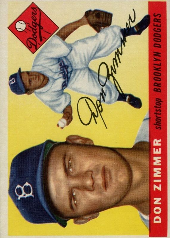 Don Zimmer's Baseball cards are available in at least 33 sets. Don Zimmer's biggest 7-day price movers are 1955 Topps #92 Base, 2020 Topps Luminaries #CUT-DZ Cut Signatures /1, and 2024 Topps Five Star #FSCS-DZ Five Star Cut Signatures /1.