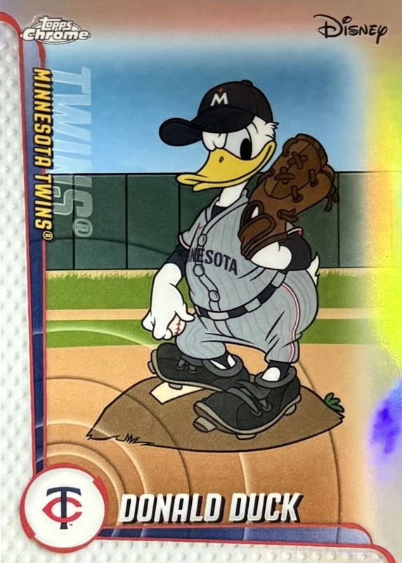 Donald Duck (Twins)'s Baseball cards are available in at least 2 sets. Donald Duck (Twins)'s biggest 7-day price movers are 2025 Topps Chrome Update #MLBA-15 Mickey & Friends /(SSP), 2025 Topps Chrome Update #MLBA-15 Mickey & Friends - Black Refractor /10, and 2025 Topps Chrome Update #MLBA-15 Mickey & Friends - Red Refractor /5.
