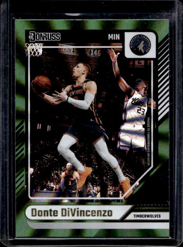 Donte DiVincenzo's Basketball cards are available in at least 89 sets. Donte DiVincenzo's biggest 7-day price movers are 2018 Prizm #246 Silver, 2024 Donruss #77 Holo Green Laser, and 2023 Optic #196 Hyper Pink.
